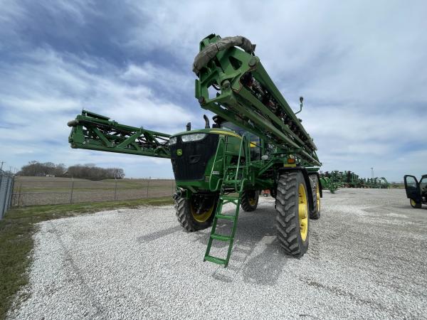 1200 gal Stainless steel tank, prem cab with leather, premium radio, 380/105R50 tires -good, Stainless steel eductor, front fill, automatic solution control, 120' SS booms, 20" spacing, less exactapply, foam markers, wheel slip, boom air purge, halogen lights, radar, beacon light, RH fence row nozzle, AT vision hardware with camera.. Before driving to see this item, please call or email to confirm availability.