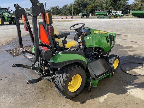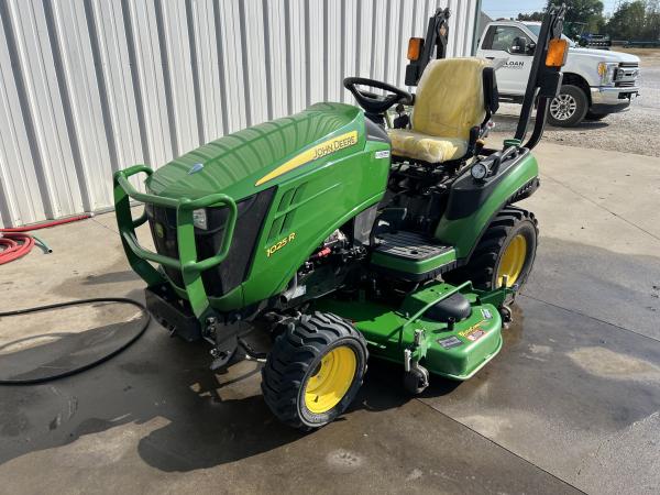 2019 JOHN DEERE 1025R, 237 hours, 60" auto connect deck, mid & rear pto, 4WD, R4 tires, dual mid scv w joystick, brush guard, no loader, no loader frames, Before driving to see this item, please call or email to confirm availability.
