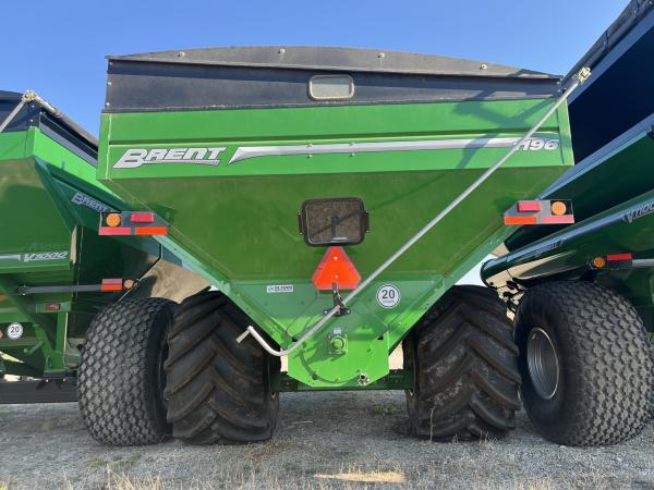 2022 BRENT 1196 DOUBLE AUGER GRAIN CART, 1250/50 X32 FLOATER TIRES, FACTORY INSTALLED TARP, FACTORY INSTALLED 410 SCALES, GREEN Before driving to see this item, please call or email to confirm availability.