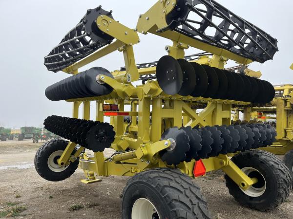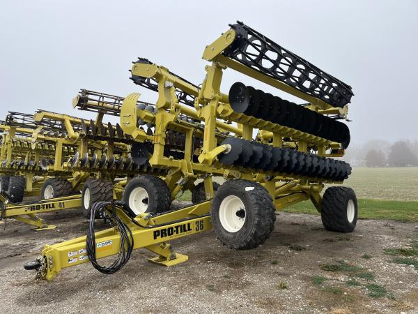 NEW PRO TILL 36' HIGH SPEED DISK - 9 BAR CAGE ROLLER - 20" NOTCHED FRONT AND SMOOTH REAR BLADES, Before driving to see this item, please call or email to confirm availability.