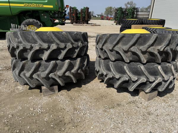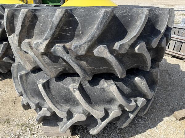 USED FIRESTONE 520/85R42 SET OF DUALS, CANE AND RICE TIRES, WITH RIMS AND SPACERS. 20 BOLT RIMS, CAME OFF OF A 2018 S780 WITH 1922 HOURS. Before driving to see this item, please call or email to confirm availability.
