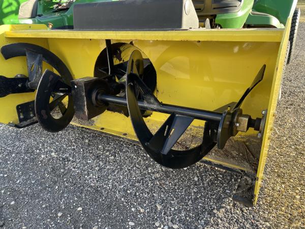 2013 JOHN DEERE X730A GARDEN TRACTOR, 25.5HP LIQUID COOLED KAWASAKI, P/S, HYD DECK LIFT, REAR DIFF LOCK, 60" HC DRIVE OVER AUTO CONNECT DECK, SERVICED AND READY TO GO. INCL - 2013 JOHN DEERE 47" 2 STAGE SNOWBLOWER, QUICK HITCH AND TIRE CHAINS. Before driving to see this item, please call or email to confirm availability.