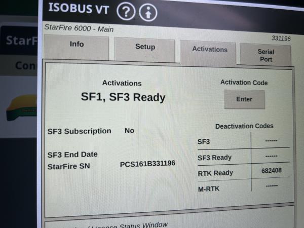 JOHN DEERE SF6000 RECEIVER...DELUXE SHROUD...SF3 ACTIVATION...Before driving to see this item, please call or email to confirm availability.