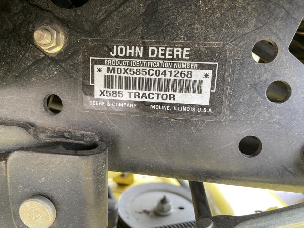 2005 JOHN DEERE X585 GARDEN TRACTOR, 4WD, LIQUID COOLED KAWASAKI ENGINE, P/S, POWER DECK LIFT, REAR DIFF LOCK, 54" DECK. Before driving to see this item, please call or email to confirm availability.