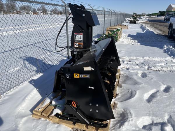 New SB84M, Two-stage hydraulic snow blower, throws snow up to 45ft, Direct drive motors at the auger and impeller, High volume intake shroud, Hydraulically actuated dual articulated chute and deflector, Adjustable skid shoes, 35-45gpm hydraulic flow range, Serrated Auger...Before driving to see this please call or email to confirm location and availability...