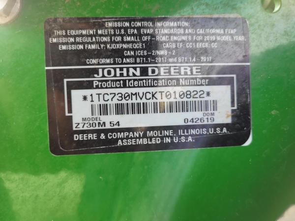 2019 JOHN DEERE Z730M ZERO TURN MOWER, 54" DECK, FOLDING ROPS, 24HP BRIGGS ENGINE. Before driving to see this item, please call or email to confirm availability.