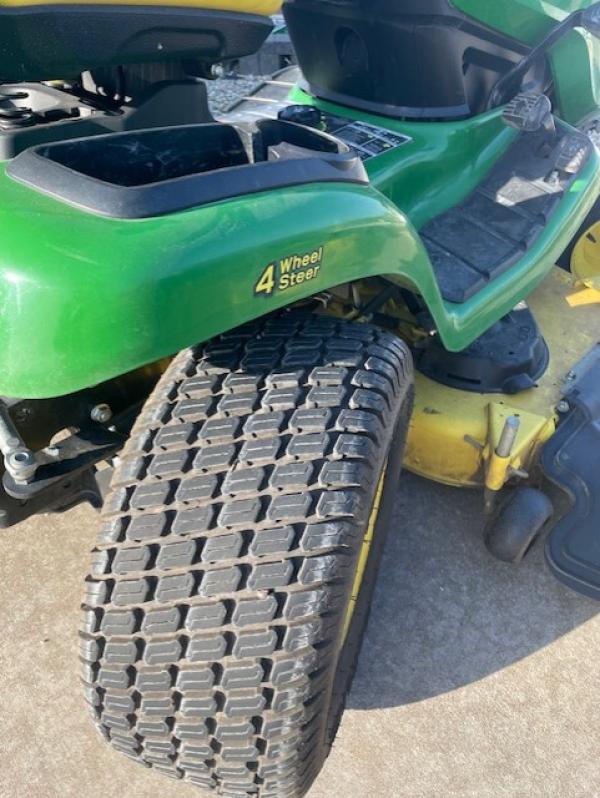 2018 JOHN DEERE X394 LAWN TRACTOR, ALL WHEEL STEER, 22HP KAWASAKI ENGINE, 48" DECK, TURF TIRES, HYDRO TRANS. Before driving to see this item, please call or email to confirm availability.