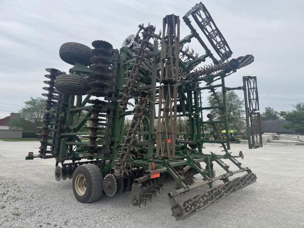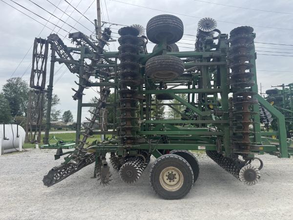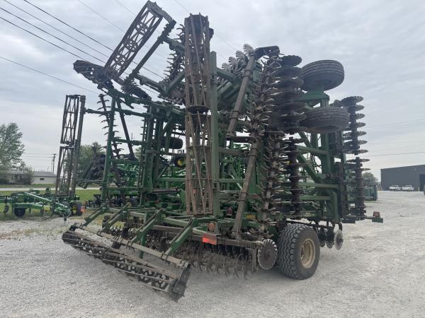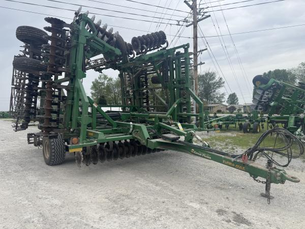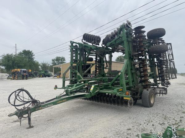 Great Plains Turbo Max VT, 40' Work Width, Single Point Depth Control, Hyd. Fore/Aft, Hyd. Wing Down Pressure, Front Wavy Blades Measure 17.75", Rear Wavy Blades Measure 18.75", Rolling Spike Harrow, Flat Bar Rolling Basket, 440/55R18 Tandems on Main Frame, 12.5L Tandems on Wings