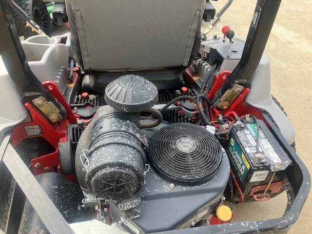 2015 ExMark Lazer Z E Series, 23.5hp Kawasaki engine, 8 gal fuel tank, 10mph ground speed, 60" side discharge deck, roll bar, suspension high back seat with armrests, rear hitch