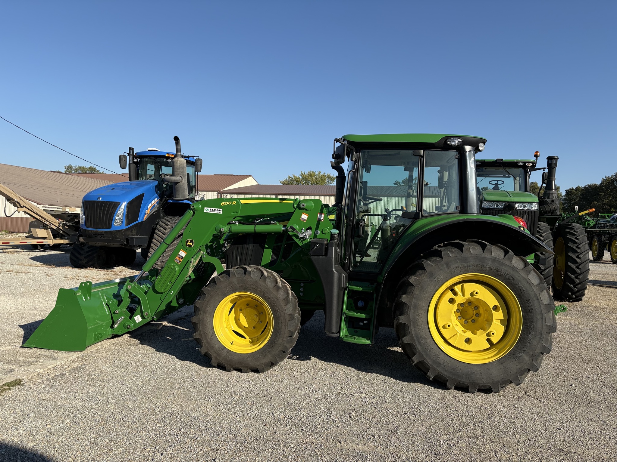 MY24 120/94 hp, FT4 eng, Std cab w/ standard seat, ext mirrors, prem radio, 24F/24R PowerQuad Plus w/ LH rev, GStar wiring harness, 30gpm hyd pump, 3 mech SCVs, 540/1000 PTO, **flange axle, 480/70R34 rears, 380/70R24 fronts, MFWD, rear fenders, cold start, PTO remote switch on fender, econ light package, batt disconnect, 3 func mid valves & joystick, less frames & hood guard, power beyond hydraulic kit. 600R Loader with 85" bucket installed & included in price. Before driving to see this item please call, or email to confirm availability. -