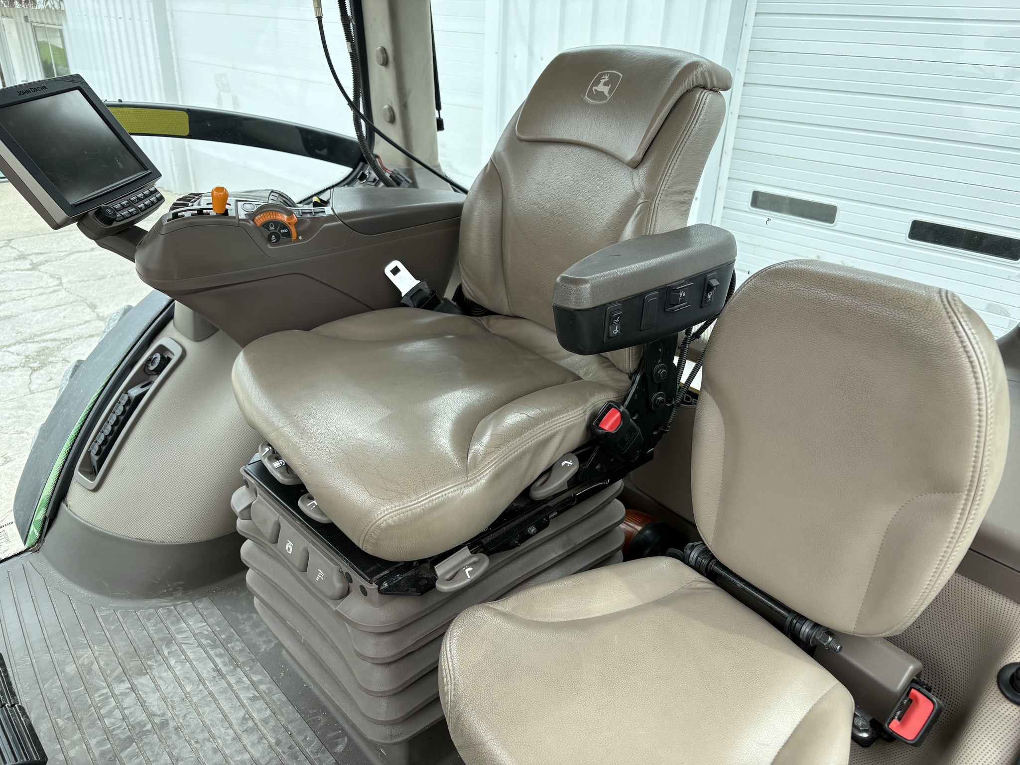 2017 MODEL 8295R, PREMIUM CAB, LIGHTS, RADIO, LEATHER TRIM, 16 SPEED POWER SHIFT TRANSMISSION, 10" DISPLAY WITH AUTOTRAC ACTIVATION, ILS, 60 GPM HYDRAULIC PUMP, 5 SCVs, AUX. HYDRAULIC CONNECTIONS, FRONT FENDERS, REAR FENDER EXTENSIONS, QUICK HITCH, CAT. 4 DRAW BAR W/ HD SUPPORT, COLD WEATHER PACKAGE, 12 FRONT WEIGHTS, 2-1400# REAR WEIGHTS, 480/80R50 REAR DUALS, 420/85R34 FRONT SINGLE, MICHELIN BRAND. Before driving to see this item, please call or email to confirm availability. -