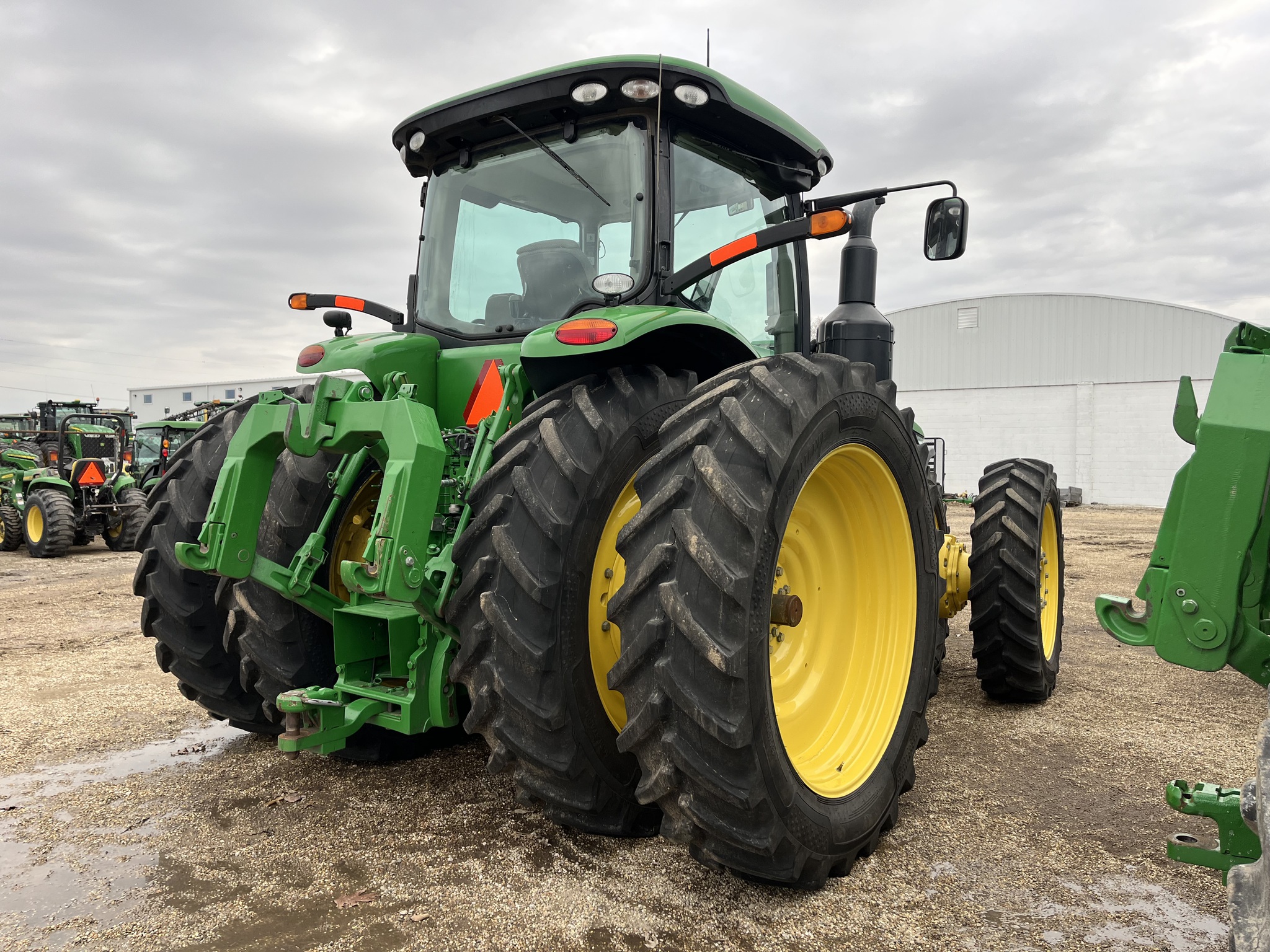 2014 JOHN DEERE 8370R MFWD TRACTOR, IVT TRANSMISSION, PREMIUM CAB WITH ACTIVE SEAT, 85 GPM HYDRAULICS, 5 REAR SCV'S, CAT 4 QUICK HITCH, 18.4X50 DUALS - ALLIANCE TIRES - 85% TREAD, 380/80R38 FRONT DUAL TIRES - 85% TREAD, 12 FRONT SUITCASE WEIGHTS, 1378 lb REAR INSIDE WHEEL WEIGHTS, ONE OWNER CENTRAL IL TRACTOR. Before driving to see this item, please call or email to confirm availability. -