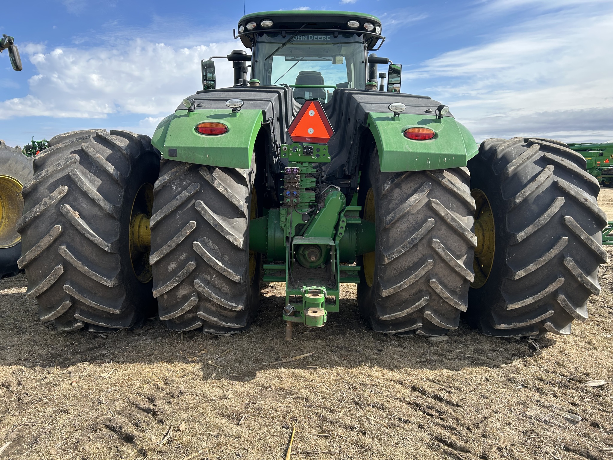 2021 John Deere 9520R PS trans, 5 scv's LED lights, 800/70R38 duals, Michelin tires, Leather seat, greaseable steering pins, hydra cushion front axle, PTO, radar, 1400lb wghts inside rear wheels, 4600 display w/3.0. Before driving to see this please call or email to confirm location and availability. -
