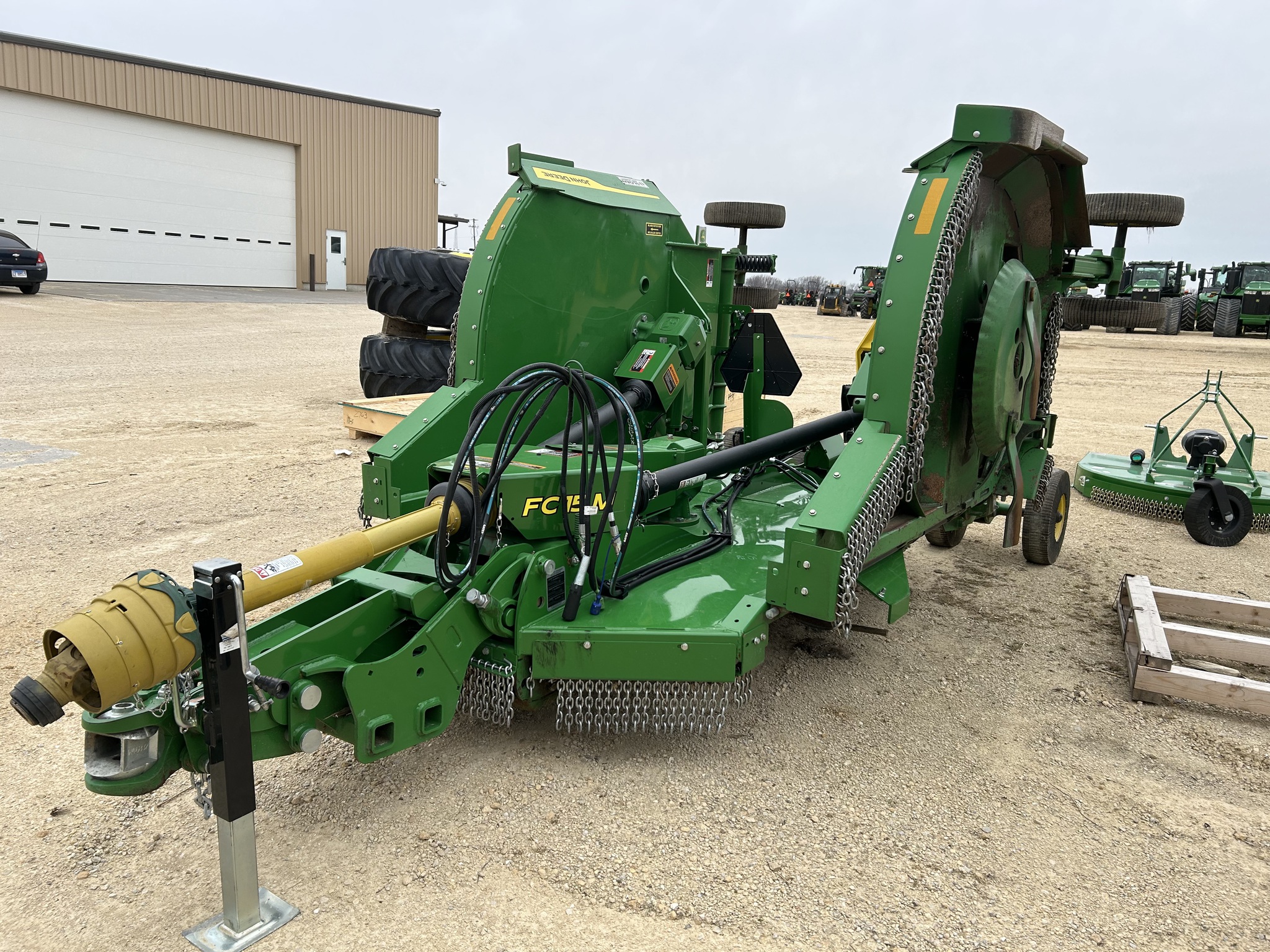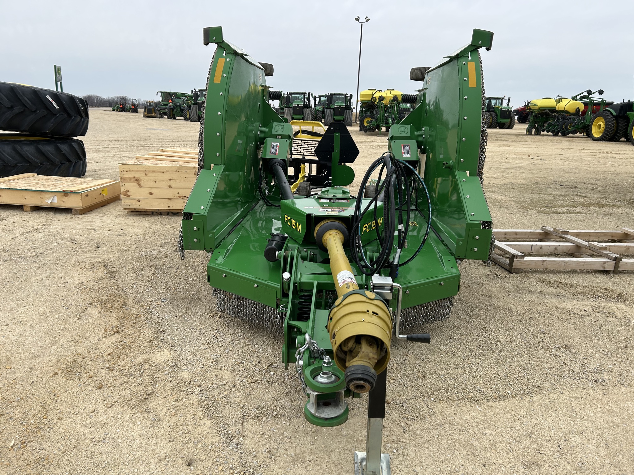 2024 John Deere FC15M 15ft cutter, 540 PTO, front and rear chains, 8 laminated tires, suspended tongue, commercial duty gear case, ball type swivel hitch, only used in 2025. Before driving to see this item please call, or email to confirm availability.