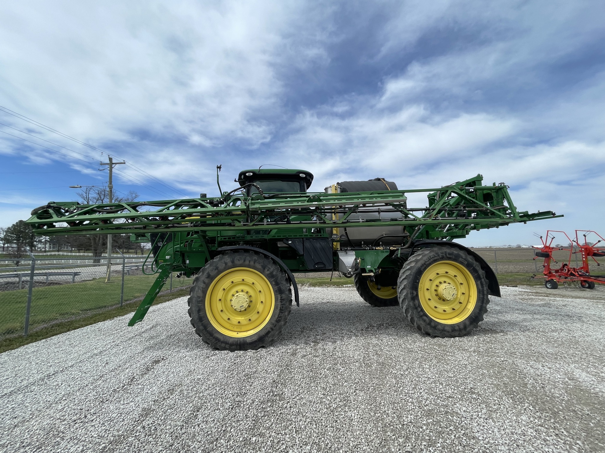 1200 gal Stainless steel tank, prem cab with leather, premium radio, 380/105R50 tires -good, Stainless steel eductor, front fill, automatic solution control, 120' SS booms, 20" spacing, less exactapply, foam markers, wheel slip, boom air purge, halogen lights, radar, beacon light, RH fence row nozzle, AT vision hardware with camera.. Before driving to see this item, please call or email to confirm availability.