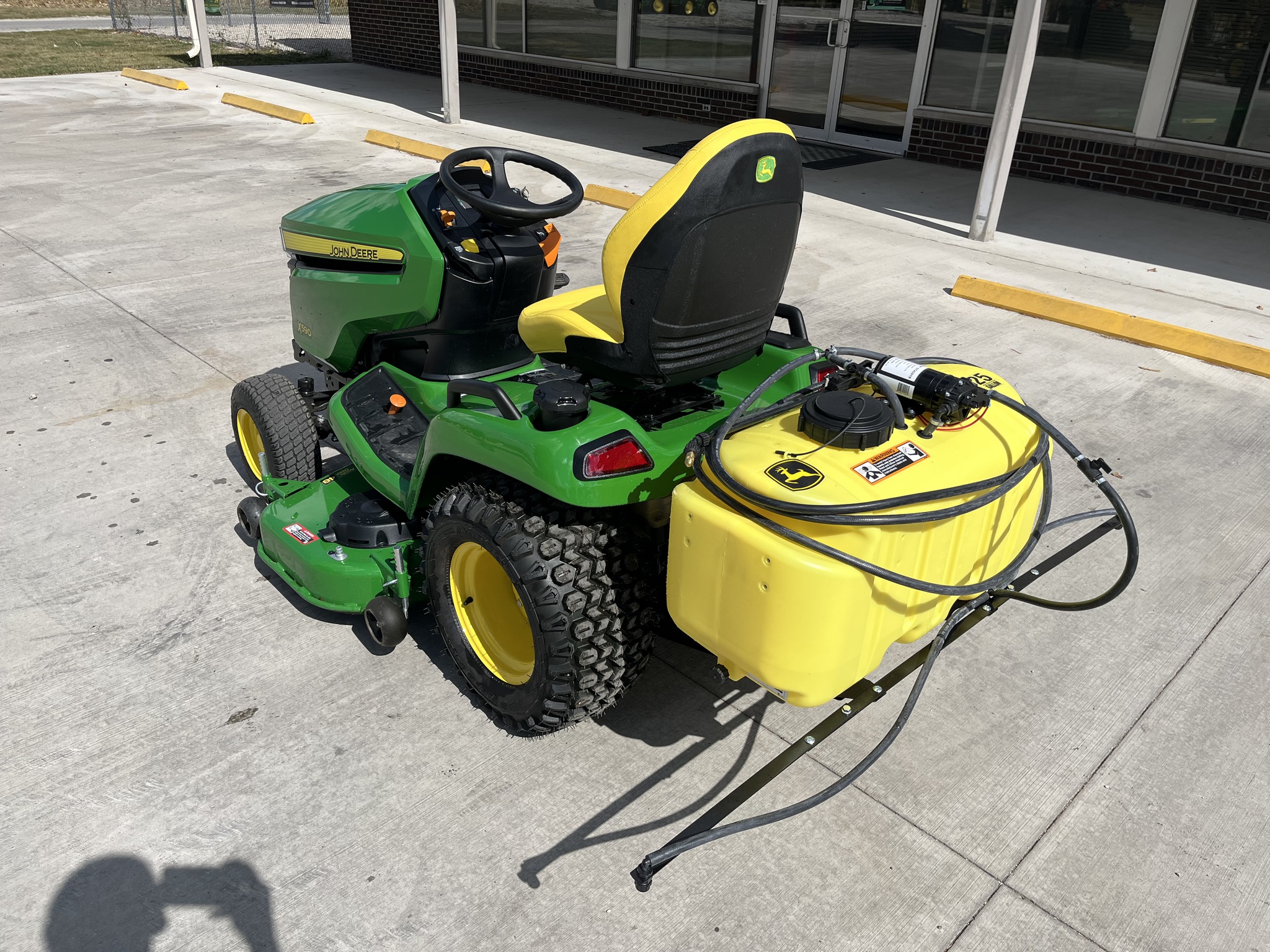 2025 JOHN DEERE X590 GARDEN TRACTOR, 48" DECK, 25.5HP EFI KAWASAKI ENGINE, P/S, POWER DECK LIFT, REAR DIFF LOCK, HDAP TIRES. NEW 25GALLON SPRAYER. FACTORY WARRANTY UNTIL 10-10-2028 OR 500 HOURS WHICHEVER COMES FIRST. Before driving to see this item, please call or email to confirm availability.