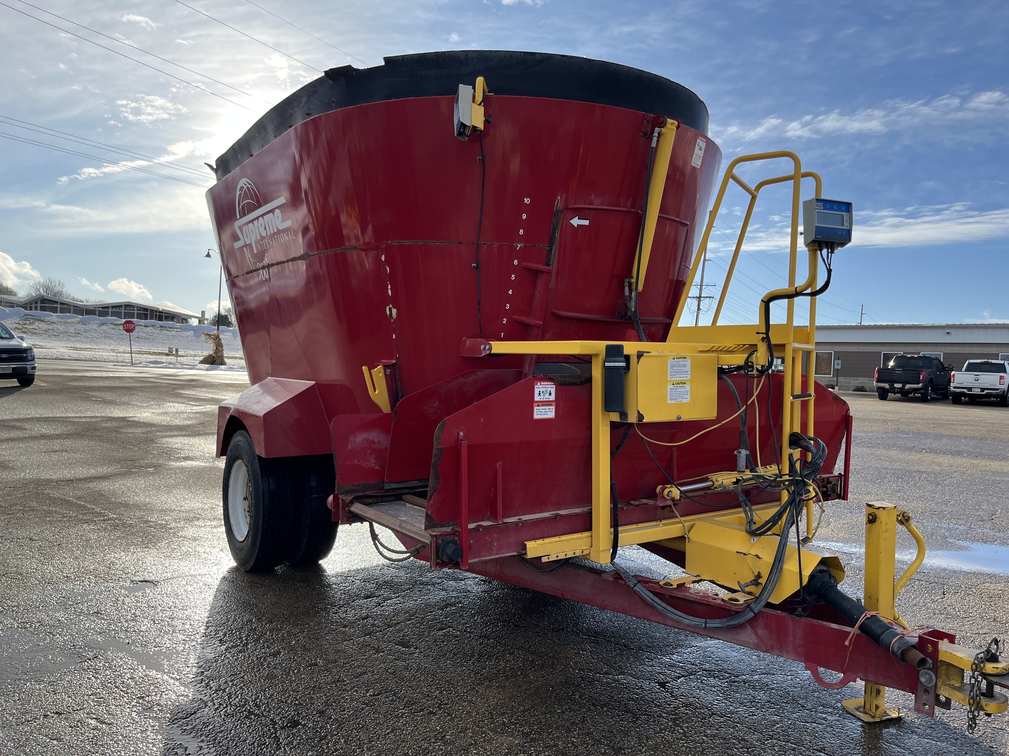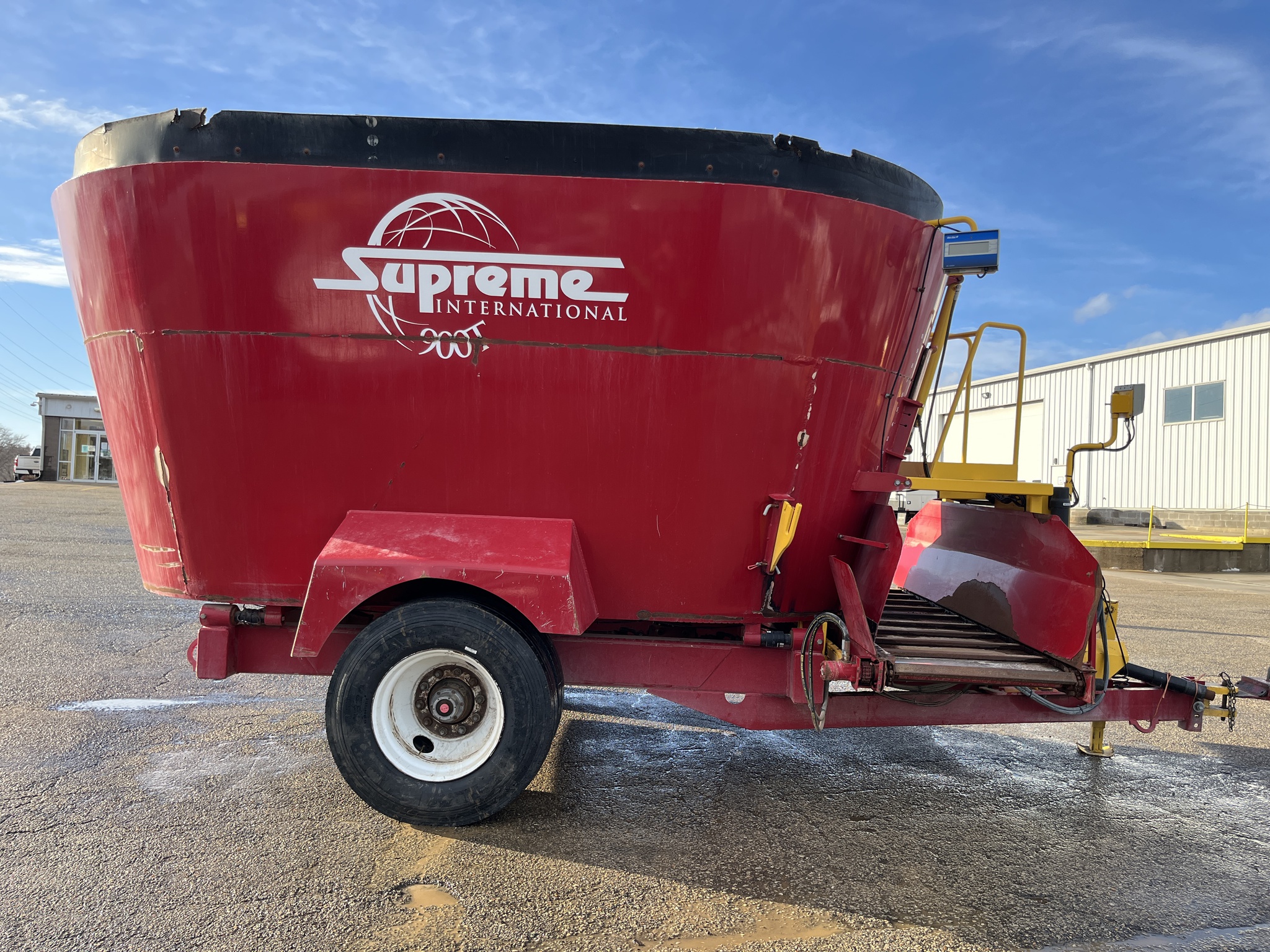 2015 SUPREME INTERNATIONAL 900T PULL TYPE VERTICAL MIXER, MAX PAYLOAD OF 24,000#, 841 ft³ STRUCK CAPACITY W/ RUBBER TUB EXTENSION, REQUIRES 130HP TO RUN, (4)- NEW 11R/22.5in 16 Ply TRUCK TIRES- SINGLE AXLE W/ DUALS, SMALL 1000 PTO, DIGI-STAR SCALE, CONVEYOR, NEWER LINERS, NEW SCREWS, NEW APRON CHAIN. Before driving to see this item, please call or email to confirm availability.